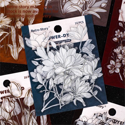 Câu chuyện Retro không thấm nước Sticker gói Hoa nhuộm loạt cổ điển chủ đề hoa trang trí nhà Tạp Chí dán 16 tờ 6 phong cách