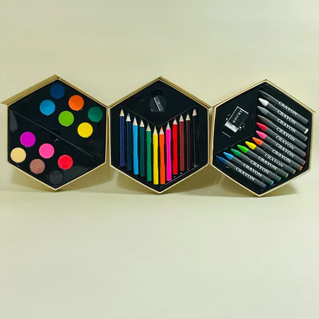 GF Popular Hexagon Design Gift Art Set Children DIY Drawing Crayon Color Pencil Watercolor Cakes Painting Set